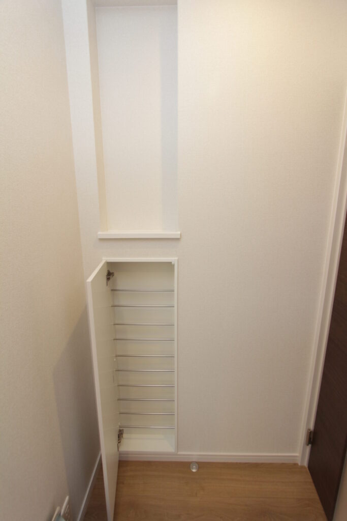 キッチン裏には既製品の収納と造り付けの収納があります。