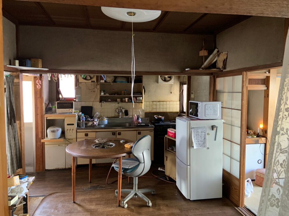 古い設備は取り替えて、天井もすっきりさせて、壁で区切られたお部屋を1つにして広々リビングにしました。